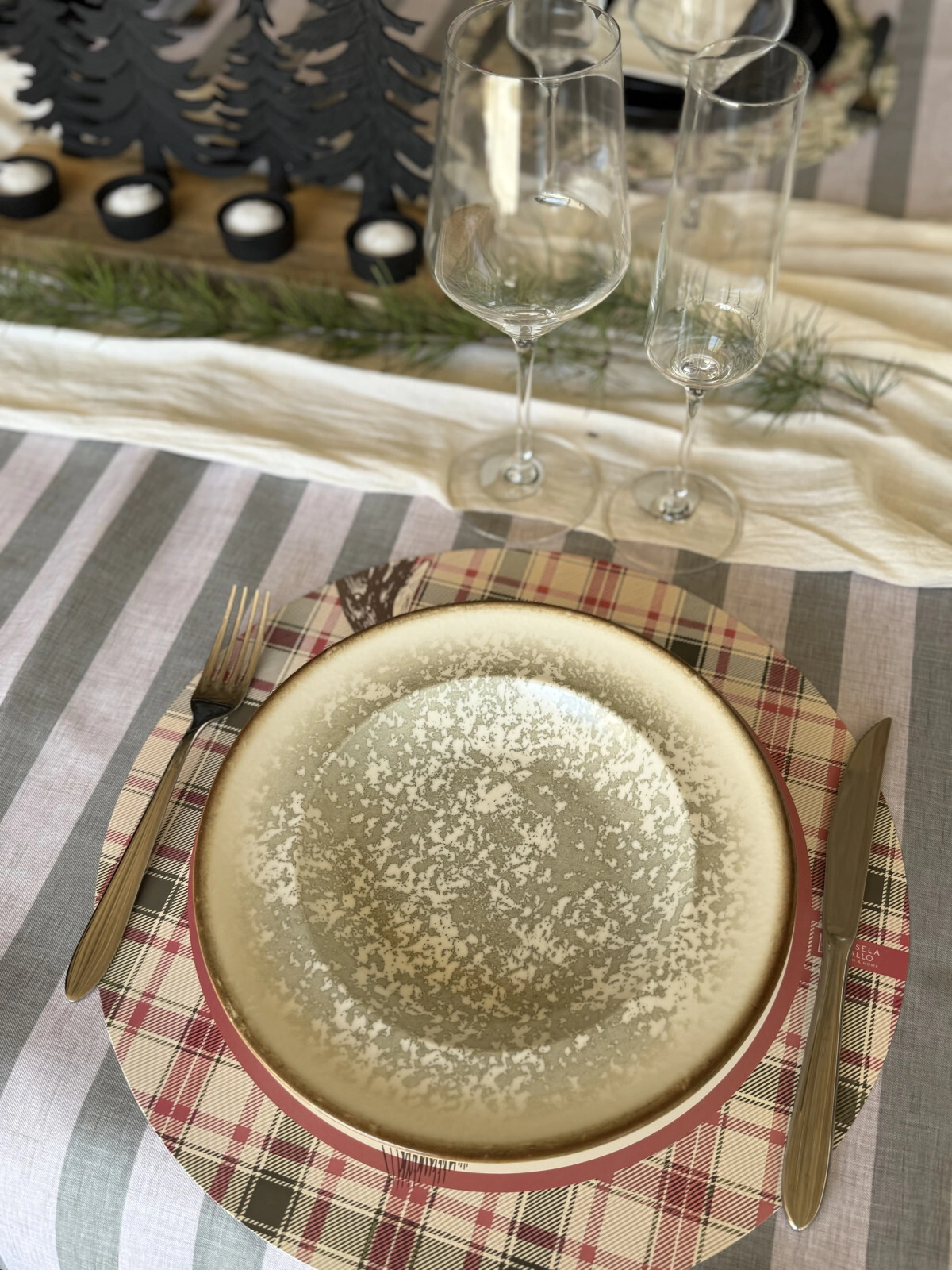 • El diseño presenta un centro de color crema claro rodeado por un borde con un efecto de salpicadura o neblina en tonos verdes suaves y beige.