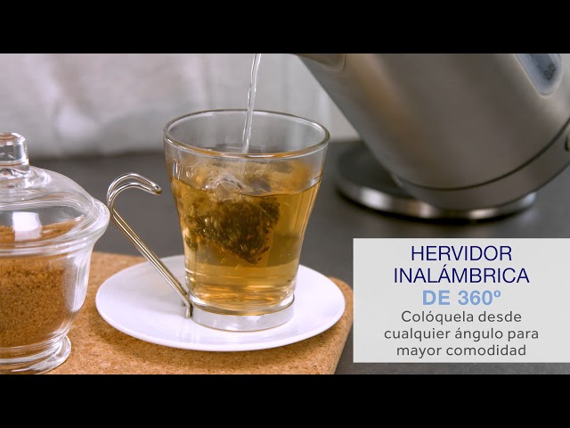 • Hervidor con posicionamiento de 360° grados puede colocarse en la base desde cualquier ángulo para mayor comodidad