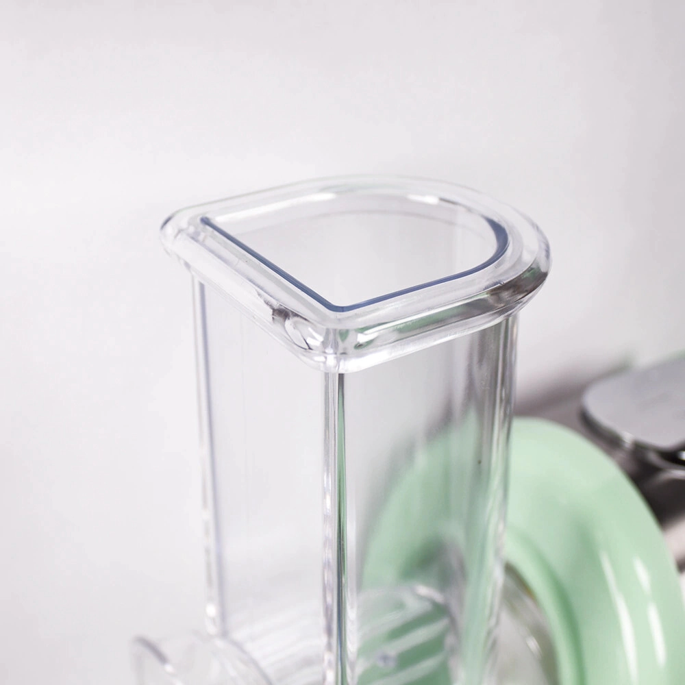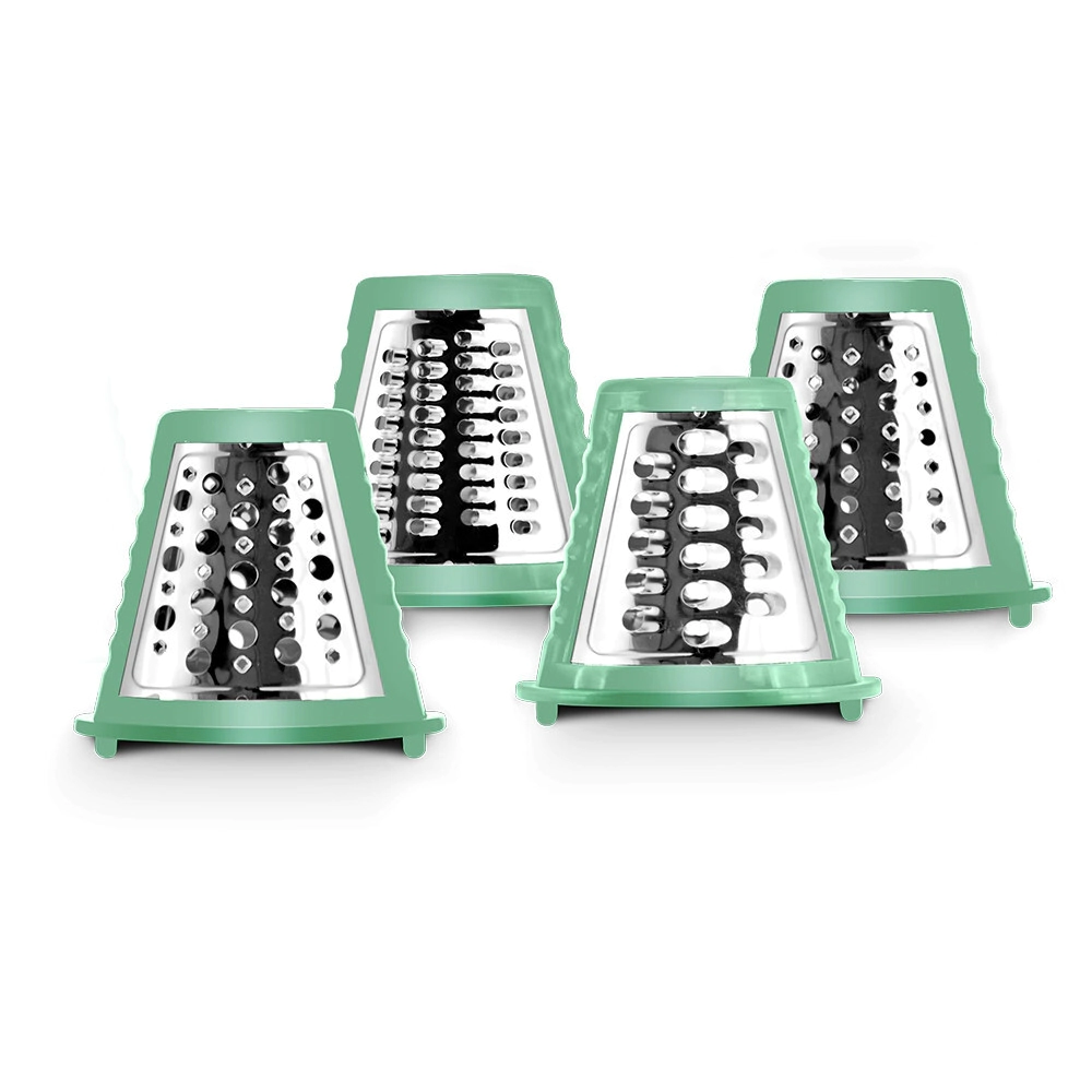 • 4 accesorios intercambiables de acero inoxidable: Rallador fino o grueso para vegetales o frutas, más dos opciones para quesos. Cambiá de accesorio fácilmente y obtené cortes precisos en segundos, solo presionados un botón.