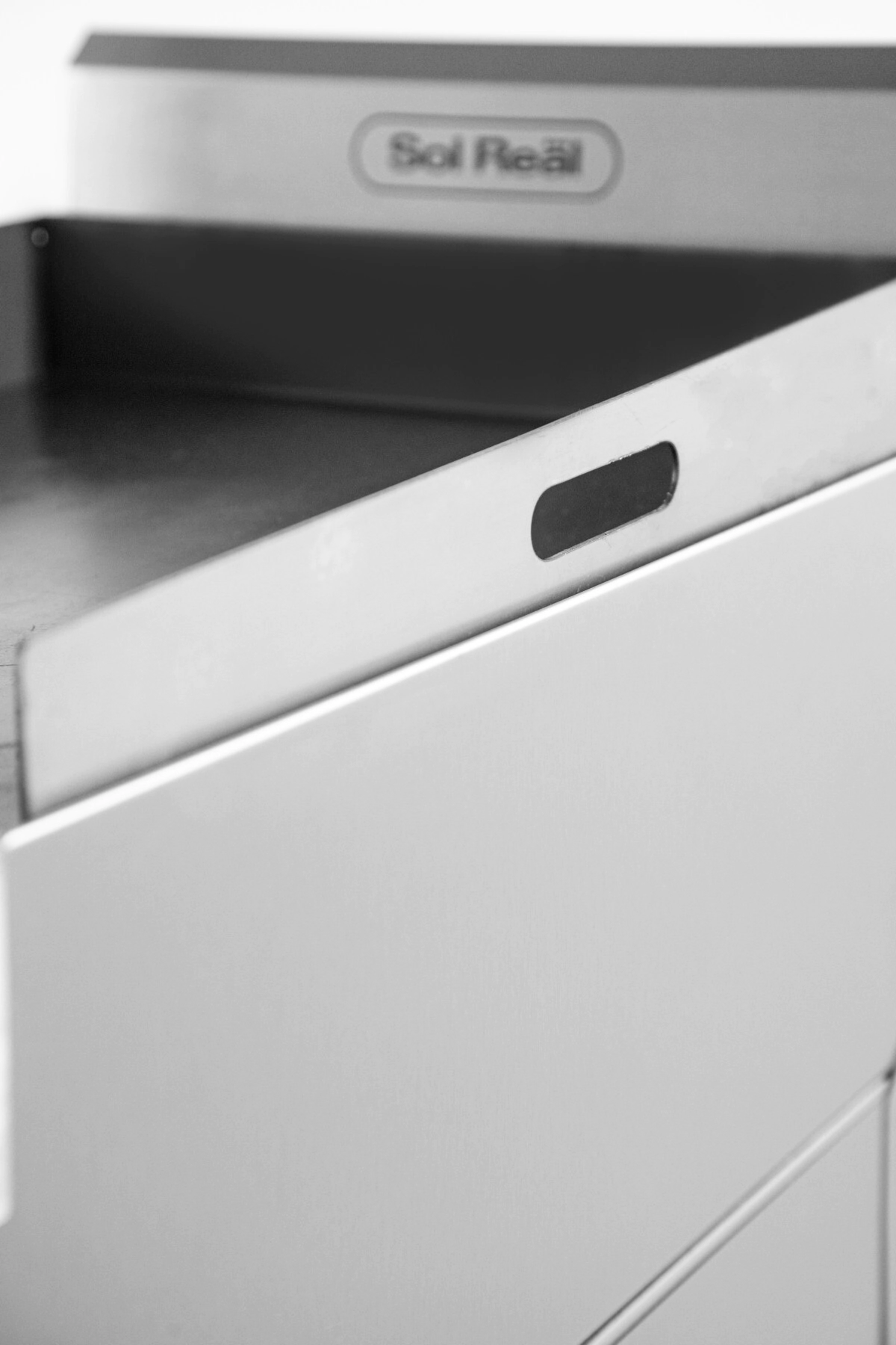 •  Gabinete 100% construido en acero inoxidable esmerilado.