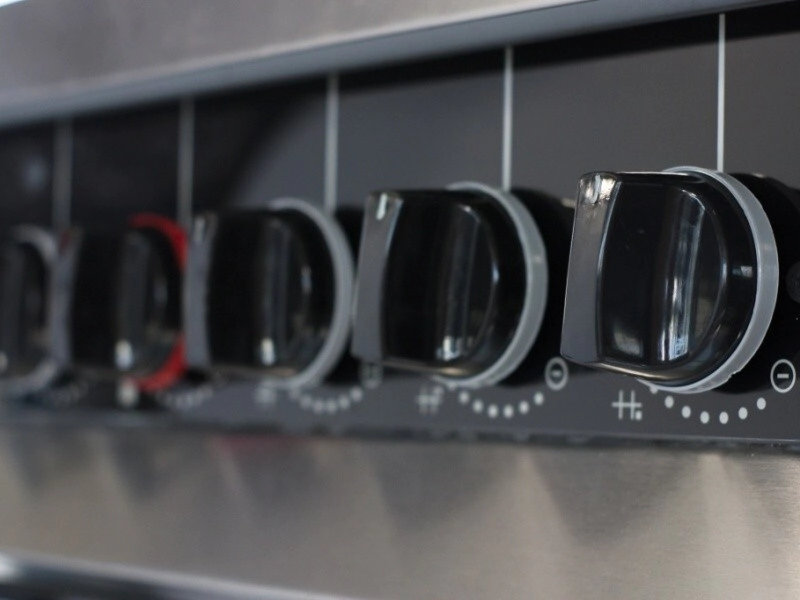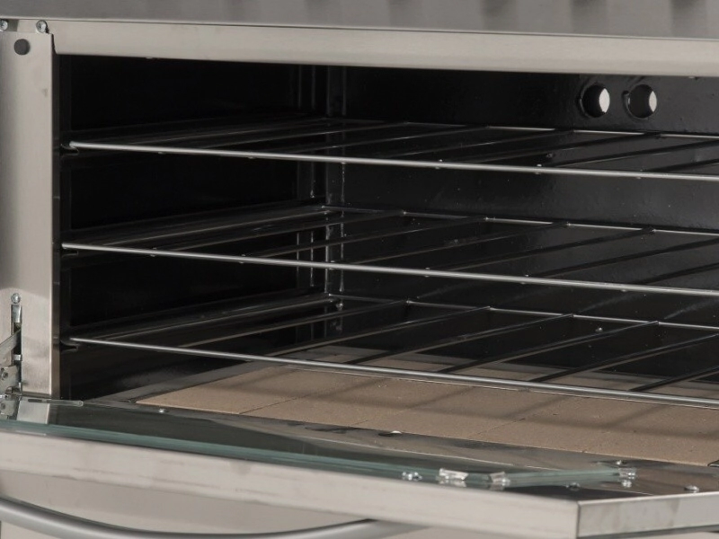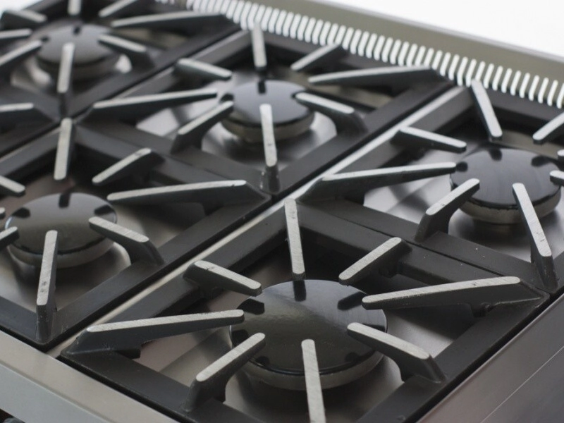 COCINA 6 HORNALLAS MINI PUERTA VIDRIO NEGRA REJAS FUNDICION GAS NATURAL SOL REAL