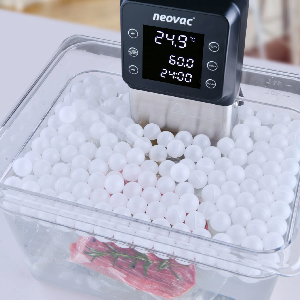 • Son compatibles con cualquier recipiente de cocina, ya que flotan en la superficie del agua para crear una capa aislante.