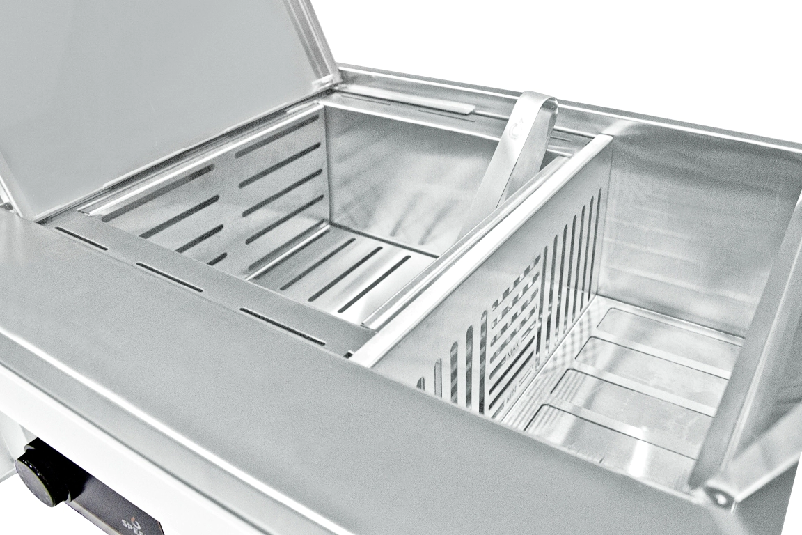 Es ideal para calentar y mantener tus alimentos a la temperatura perfecta. Cuenta con una zona de precalentado que en tan solo tres minutos permite que las salchichas alcancen 80ºC desde el estado de refrigeración. El vapor es el medio perfecto para mantener las salchichas calientes sin alterar su forma, color o sabor, a diferencia del agua. Sin embargo, el vapor tarda en transmitir la temperatura, por lo que la zona de precalentado es esencial. Esta panchera es totalmente automática y permite regular la temperatura a tu gusto. Está construida con puerta de acero inoxidable, laterales y fondo de policarbonato, lo que garantiza su durabilidad. Además, cuenta con un desagote de agua para facilitar su limpieza.