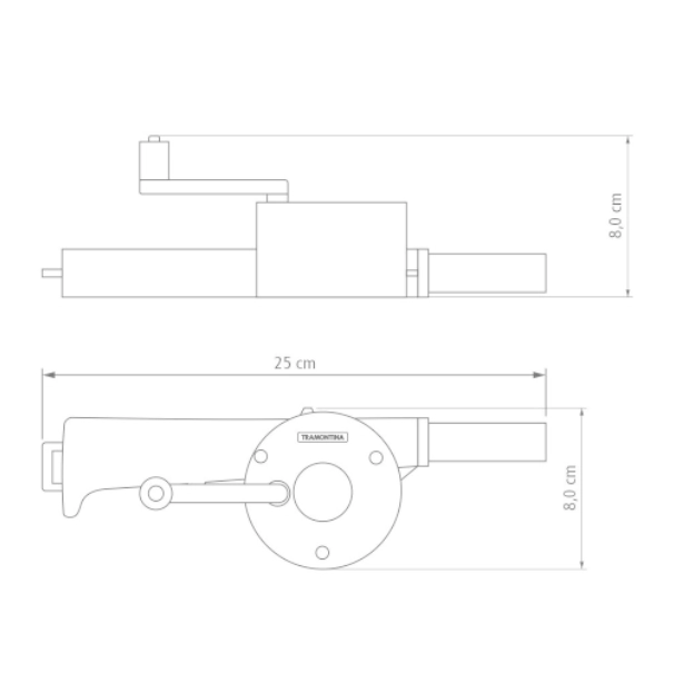 Encienda el carbón; enseguida dirija la punta del tubo del Soplador Tramontina hacia la base de la llama y gire la manivela.