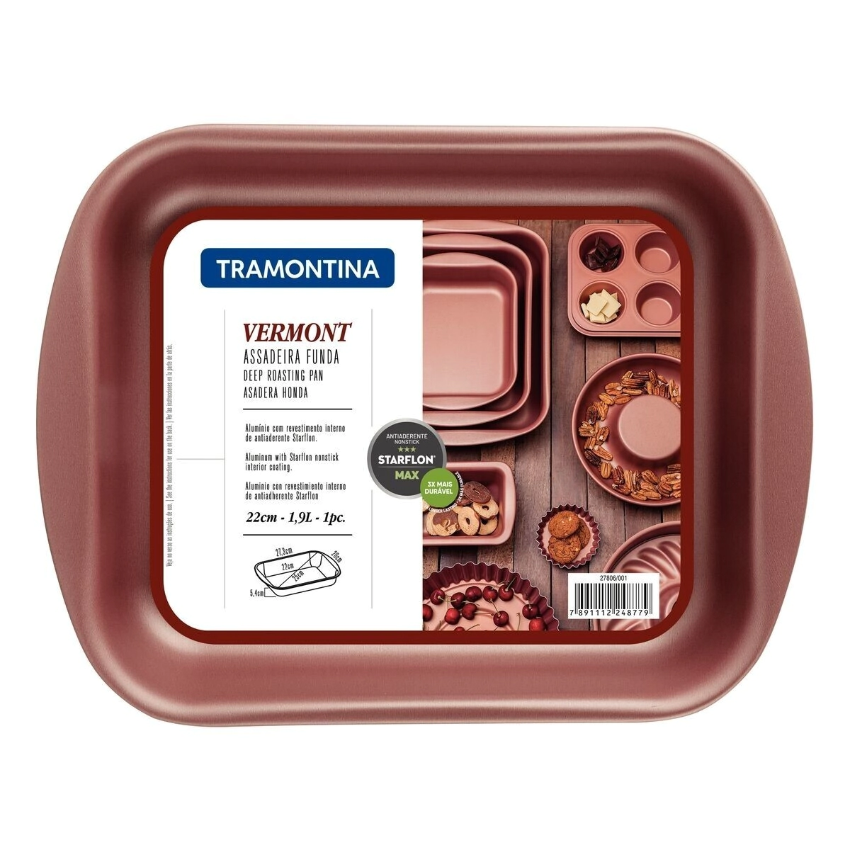 Asadera rectangular honda Tramontina Vermont en aluminio con revestimiento interno de cobre antiadherente Starflon Max grafito 22 cm