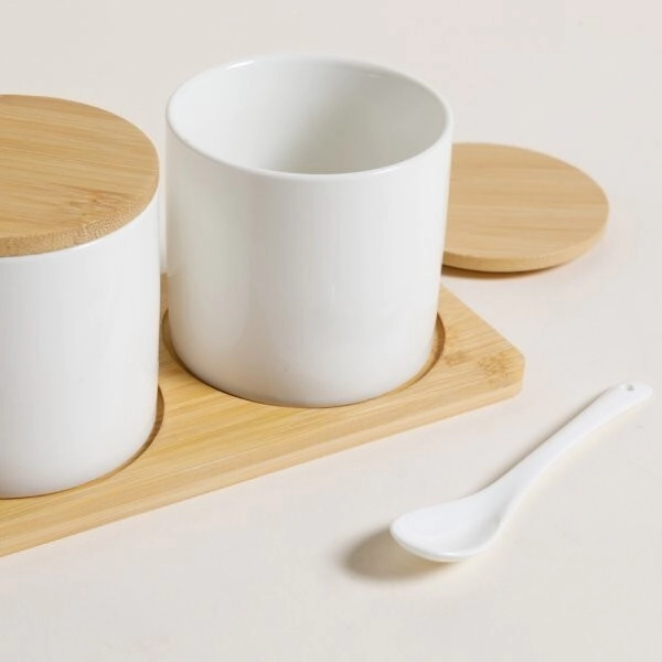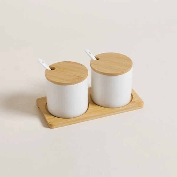 • Incluye: 2 recipientes multiuso con tapa + 2 cucharas de cerámica blanca + 1 bandeja