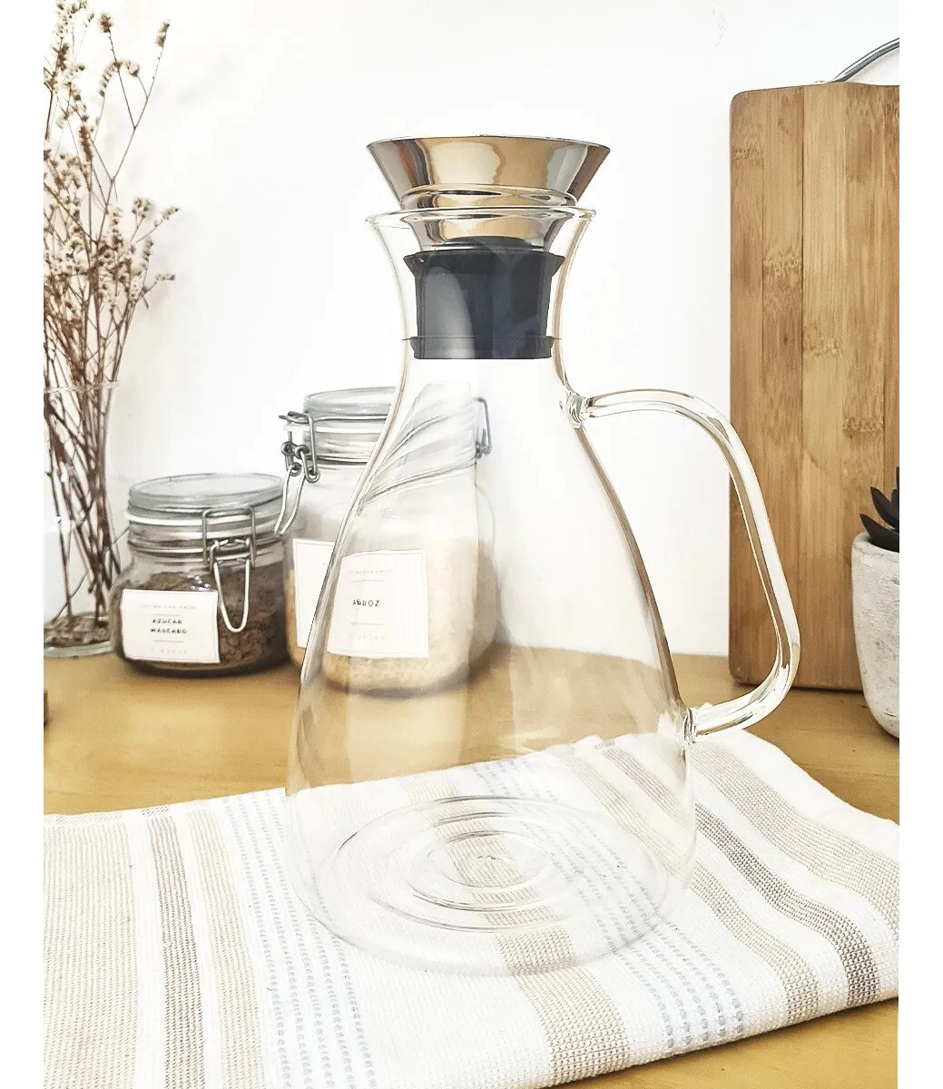 • Jarra de vidrio con tapa , ideal para servir bebidas