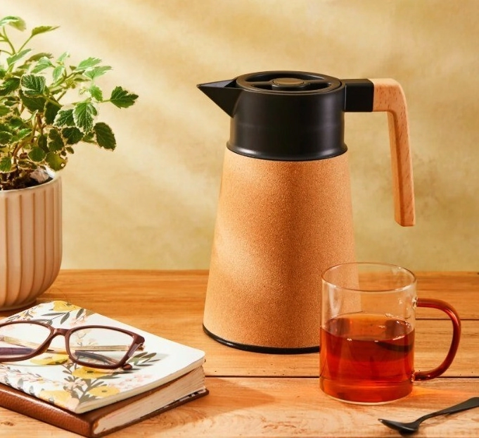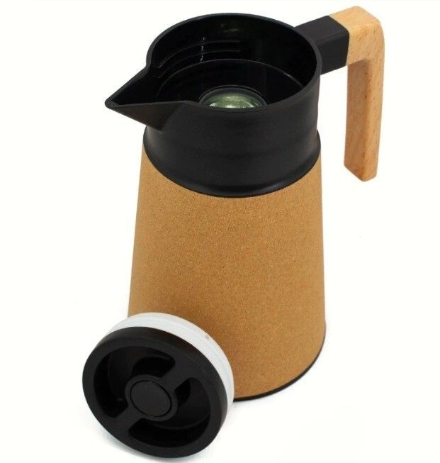 • Tiene un diseño elegante con un revestimiento de corcho y un mango de madera.