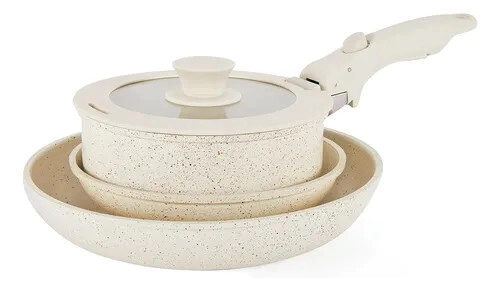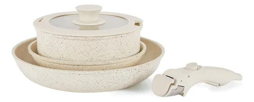 • 5 PIEZAS:  CACEROLA, diámetro: 18 cm con tapa / SARTÉN, diámetro: 20cm / SARTÉN, diámetro: 26 cm / MANGO extraíble