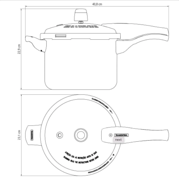 Olla de Presión Tramontina Vancouver en Aluminio con Revestimiento Interno y Externo Antiadherente Starflon Max Grafito 20 cm 4,5 L