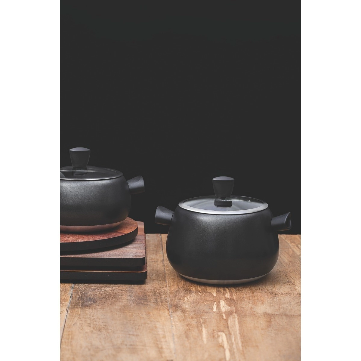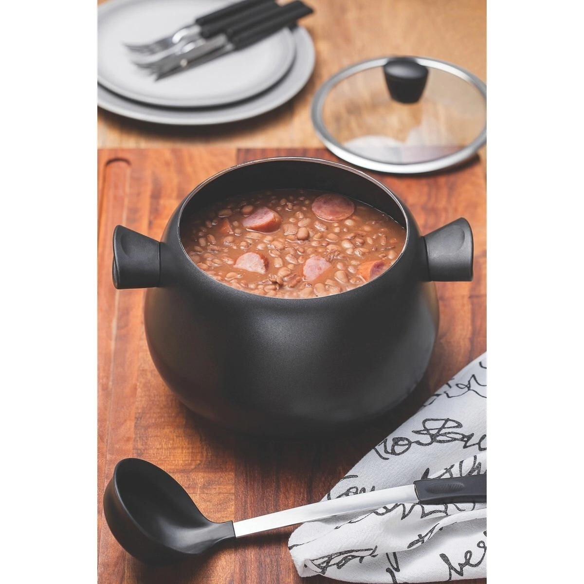 El juego Tramontina Pamplona de aluminio con revestimiento interno antiadherente Starflon T3, 5,5 lts, 2 piezas es la elección ideal para que usted haga aquella comidita casera y llena de sabor, que invade la casa con un aroma sorprendente. Es una excelente opción para preparar sopas, caldos, risotos, salsas y la feijoada. Fabricada en aluminio con revestimiento interno y externo antiadherente Starflon T3 que tiene más poder de antiadherencia, más resistencia a la abrasión, más durabilidad, más facilidad de limpieza y es exento de PFOA, trae asas y pomo de baquelita antitérmica, evitando posibles quemaduras durante el uso. La tapa se fabrica con vidrio templado con borde de acero inoxidable y salida de vapor. Viene con cuchara para servir de silicona y eje de acero inoxidable, para traerle todavía más belleza a la mesa y hacer que el momento de servir sea todavía más práctico.