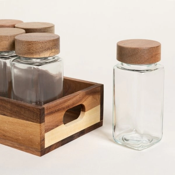 • Material: Vidrio y madera de Acacia