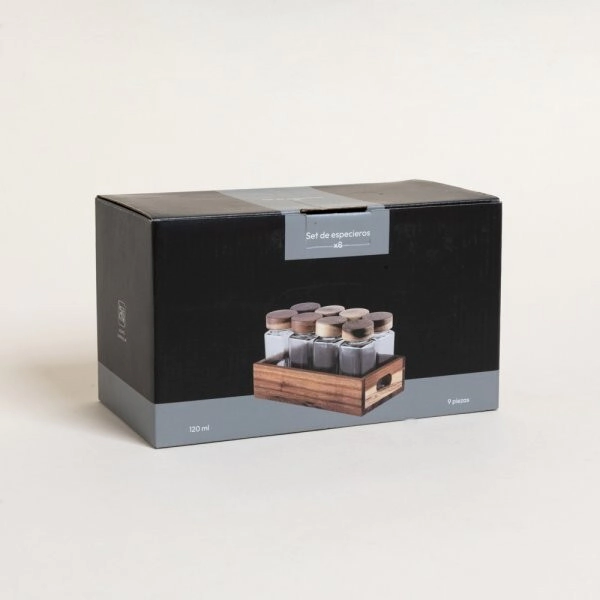 • 9  Piezas: 8 especieros y 1 rack contenedor