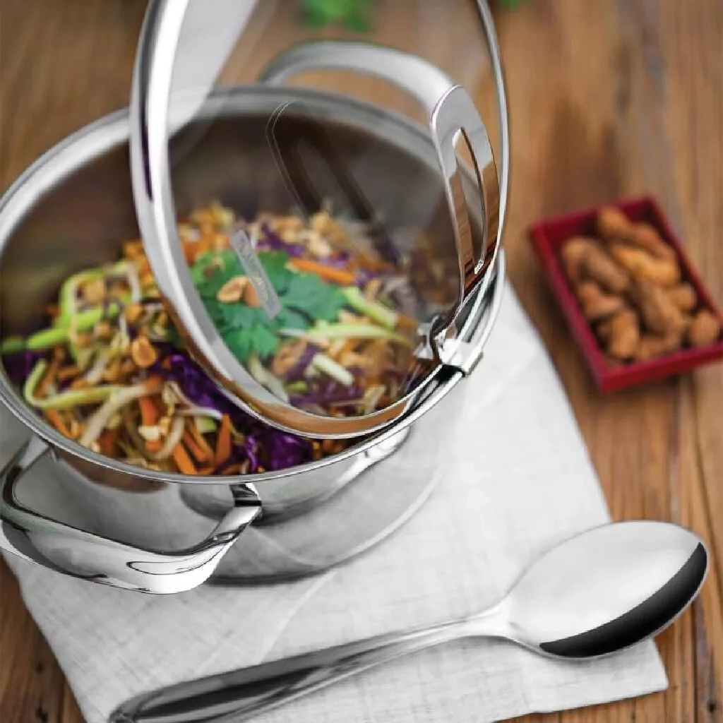Hecha de acero inoxidable, no suelta ningún residuo en los alimentos, manteniéndolos sanos. Altamente durable, mantiene las características originales, conservando la belleza, higiene y durabilidad del material. El fondo triple (acero inoxidable + aluminio + acero inoxidable) distribuye el calor uniformemente, proporcionando una cocción más rápida y uniforme, ahorrando energía y manteniendo los alimentos calientes durante un tiempo mayor. La tapa de vidrio se puede apoyar en el borde de laolla alta, haciendo que el vapor condensado en ella escurra hacia adentro de la olla alta. Tiene un diseño diferenciado y moderno, con terminación en alto brillo. Tiene tapa de vidrio con salida de vapor y encaje perfecto. Se puede lavar diariamente en lavavajillas.Se puede utilizar en cocinas: a gas, eléctricas, sobre vidriado cerámico y de inducción. El juego contiene 1 cacerolas 2 asas Honda 3.10L, 1 cacerolas 2 asas Honda 5.70L, 1 cacerola con mango 1.5L.