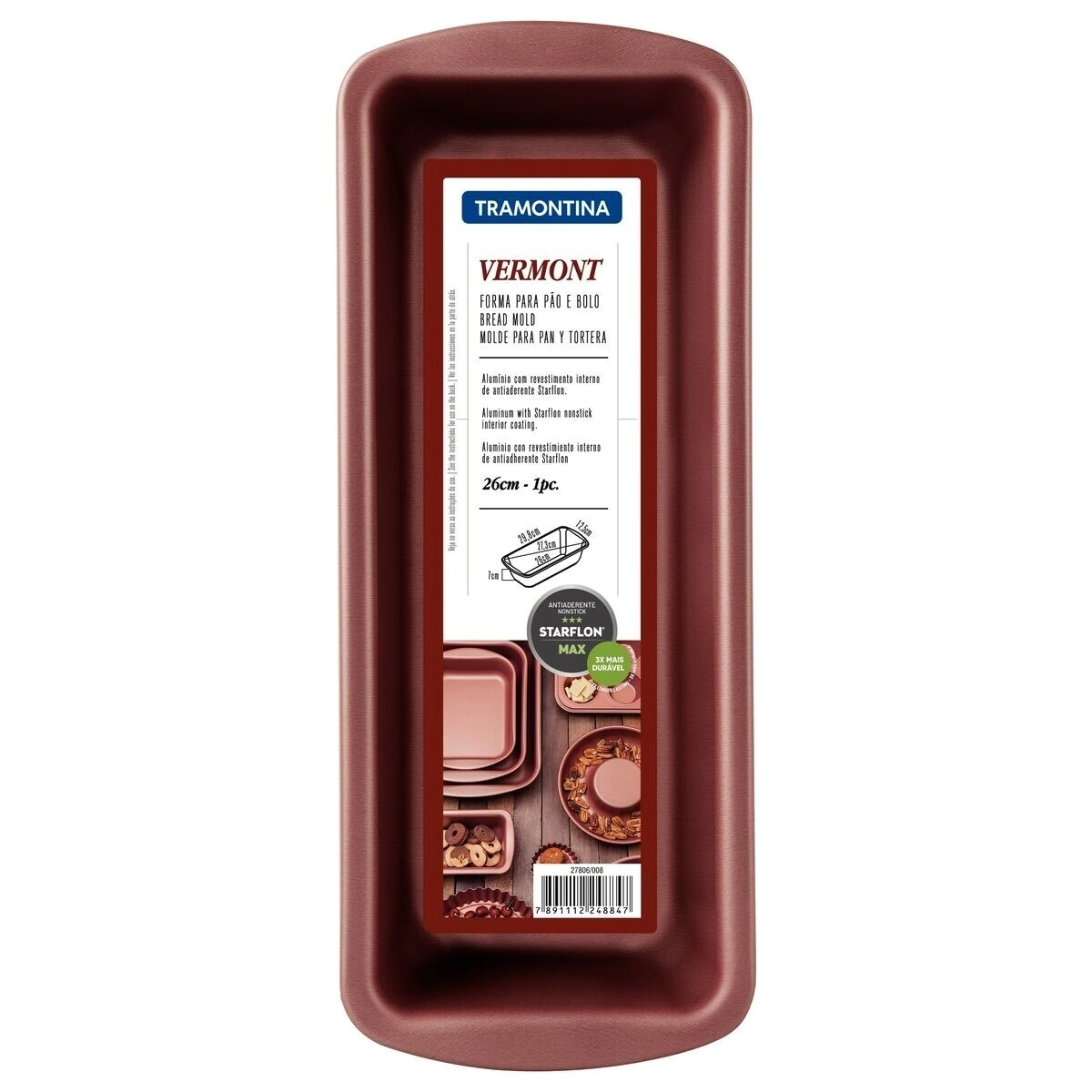 Molde para Pan y Budín Tramontina Vermont en aluminio con revestimiento interno de cobre antiadherente Starflon Max grafito 26 cm