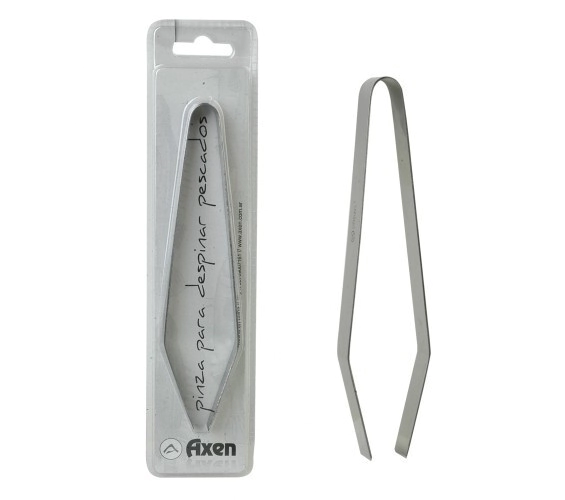 Pinza de acero inoxidable de nuestra linea Axen, muy util para deshacerse de las espinas de todo tipo de pescados muy fácilmente.