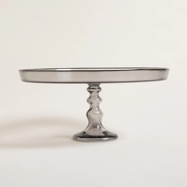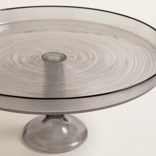 • Pie de torta realizado en vidrio transparente de color gris. Estilo moderno y versátil, material de excelente acabado y calidad.