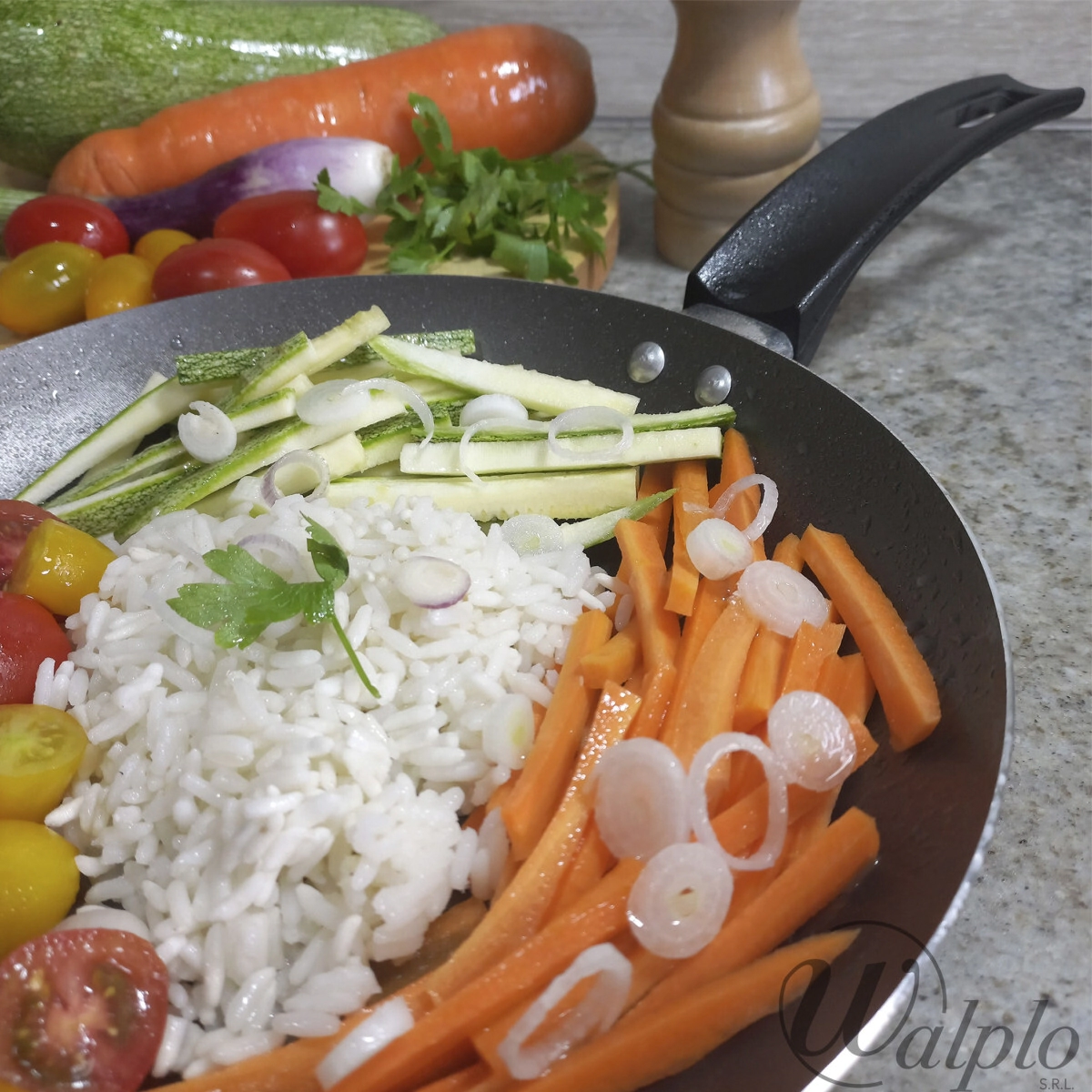 • Material: Aluminio recubierto con 5 capas de Antiadherente interno y externo - Mango: Baquelita