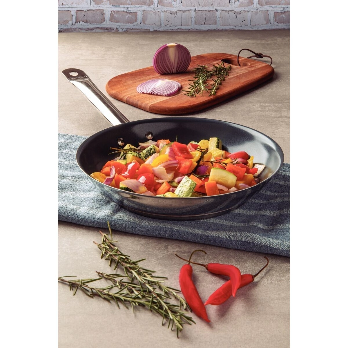 Sartén BAJA Profesional de acero inoxidable con fondo triple y revestimiento interno de cerámica grafito de 30 cm y 2,9 l Tramontina
