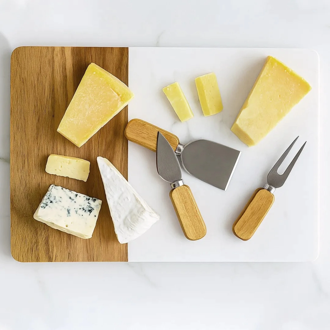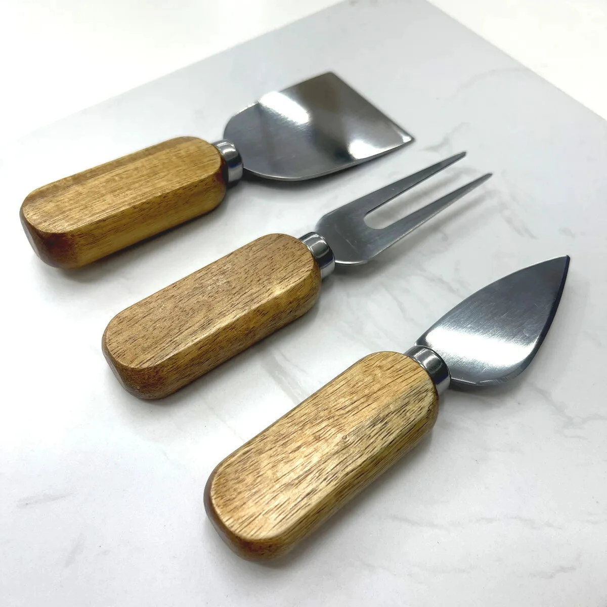 • Utensilios incluídos: 1 Tenedor para quesos, 1 Cuchillo para untador y 1 Cortador ( 3 unidades, 13 cm de largo c/u)