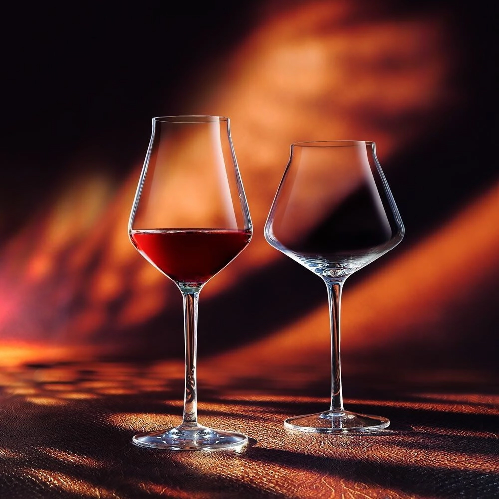 Chef&Sommelier firma la gama Reveal Up, el viaje sensorial comienza al descubrir la capa de los caldos gracias a una transparencia perfecta, y continúa con la percepción en nariz de los aromas afrutados, decantados gracias a una superficie de oxigenación muy amplia en un generoso diseño.