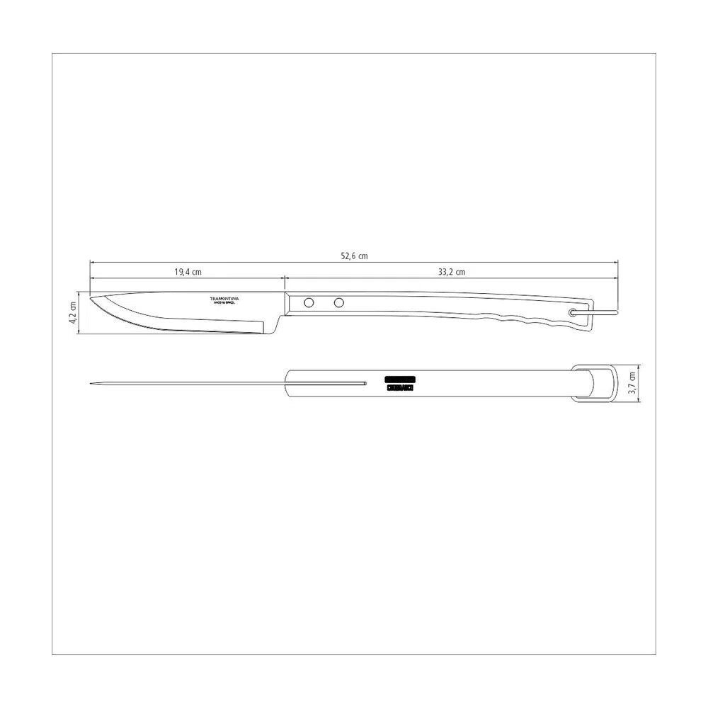 • Medidas: Hoja: 19, 4 cm - Mango: 33,2 cm - Largo Total: 52,6 cm