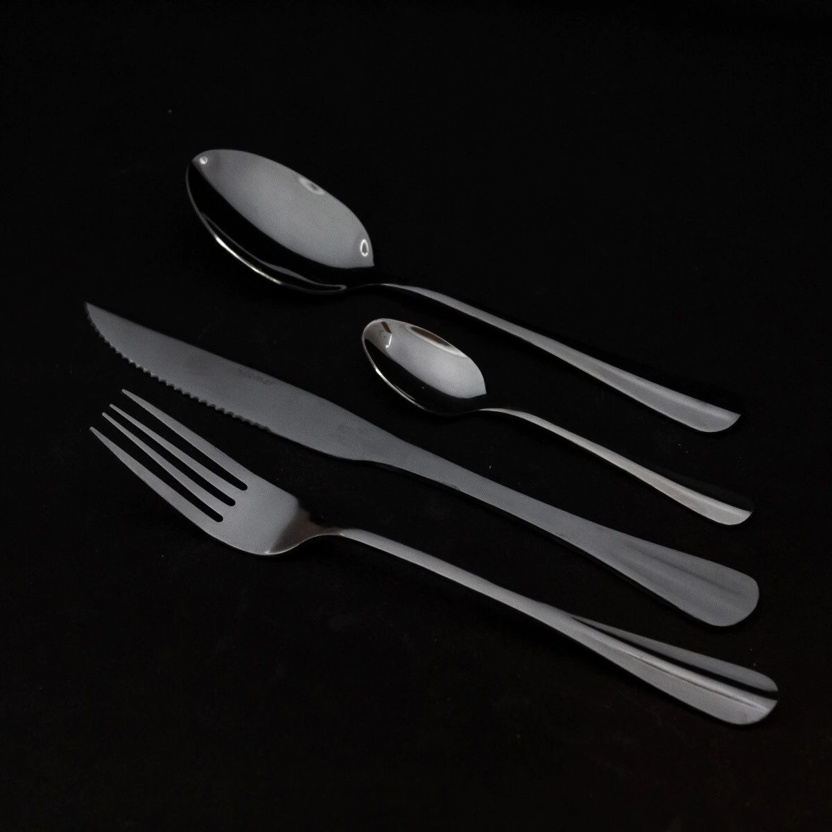 • Incluye: 6 Tenedores de Mesa - 6 Cuchillos de Carne - 6 Cucharas de Mesa - 6 Cucharitas de Café