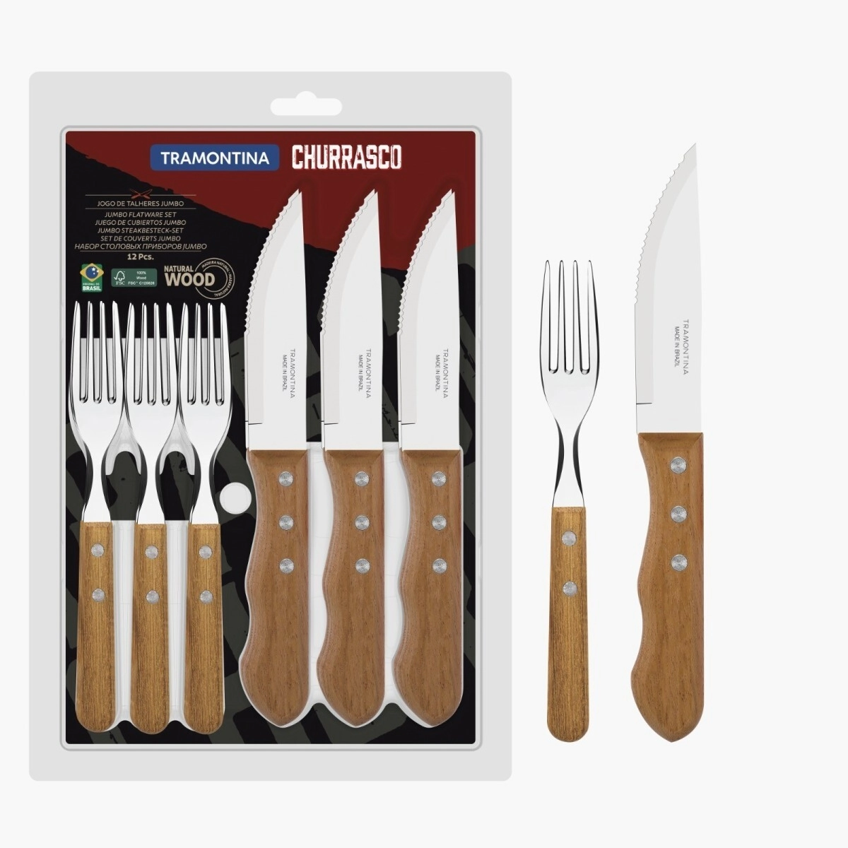 • Incluye: 6 Tenedores Jumbo + 6 Cuchillos Jumbo + 1 Cuchilla Carbón de regalo
