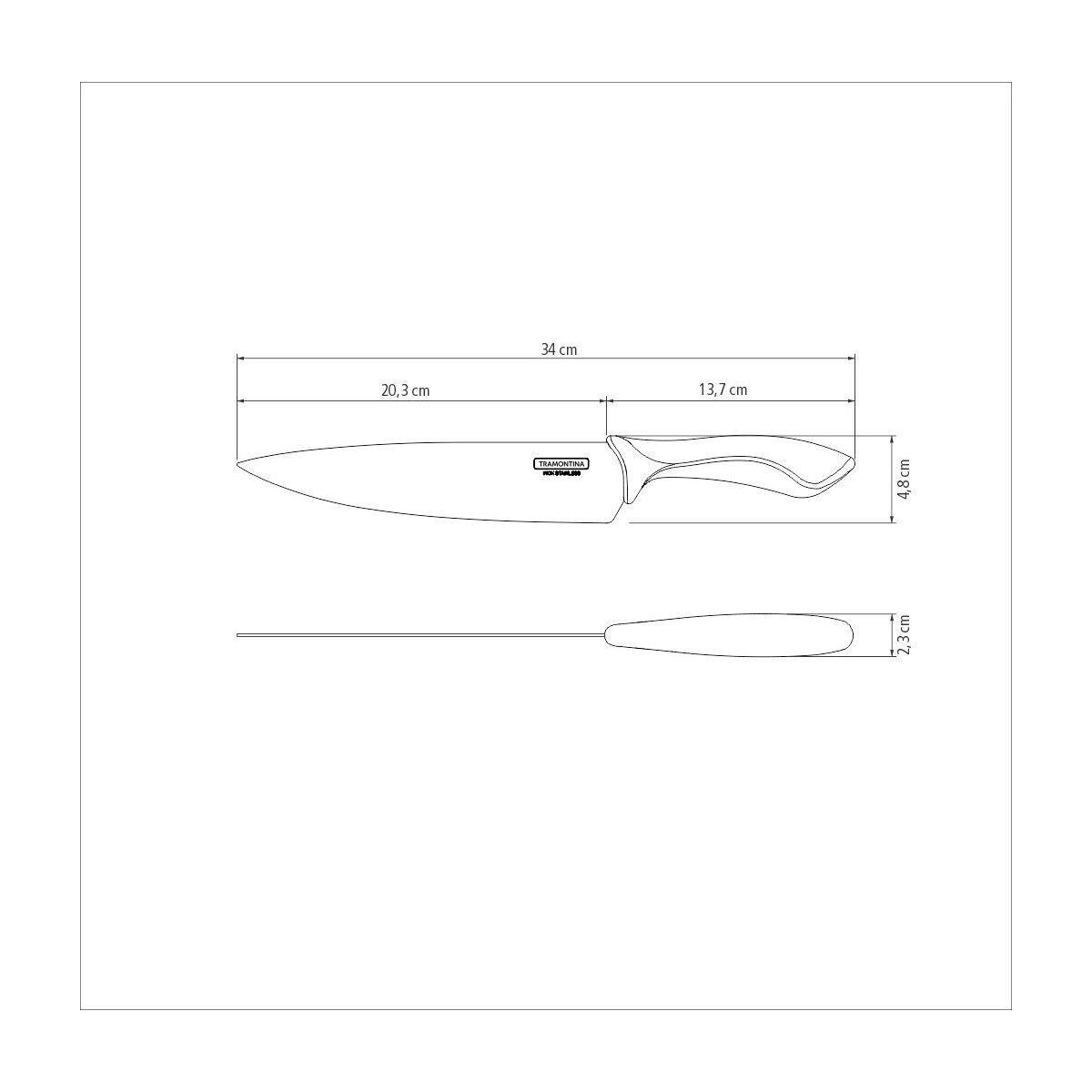• Cuchillo Chef 8": Largo: 34 cm - Ancho: 4,8 cm - Altura: 2,3 cm