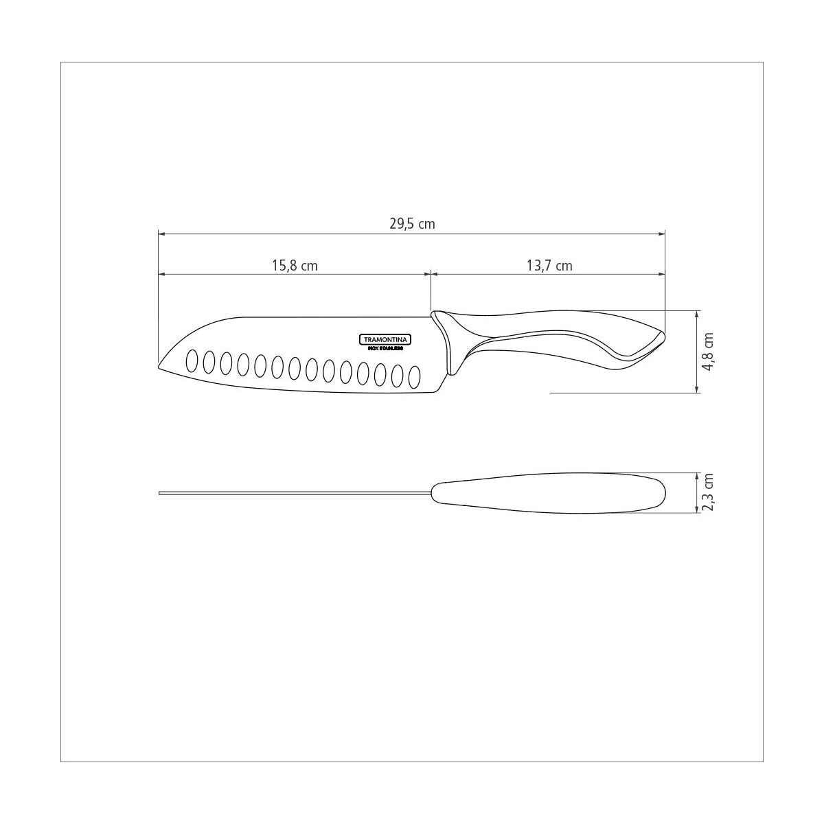 • Cuchillo Santoku 7": Largo: 29,5 cm - Ancho: 4,8 cm - Altura: 2,3 cm