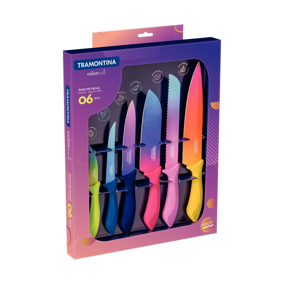 Juego de Cuchillos Tramontina Colorcut con Láminas de Acero Inoxidable y Mangos de Polipropileno Pintado 6 Piezas