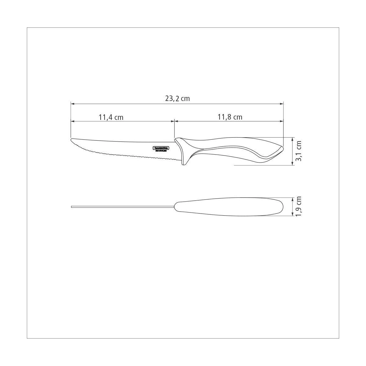 • Cuchillo para pan 8": Largo: 32,1 cm - Ancho: 3,7 cm - Altura: 2,3 cm