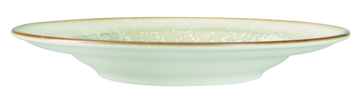 • El diseño presenta un centro de color crema claro rodeado por un borde con un efecto de salpicadura o neblina en tonos verdes suaves y beige.