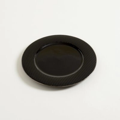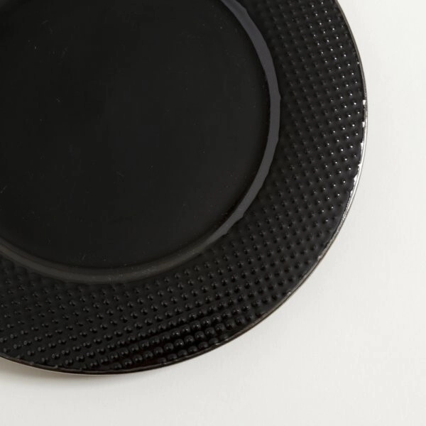 • Diseño que combina el acento negro, junto con la trama de puntito y el detalle de borde dorado